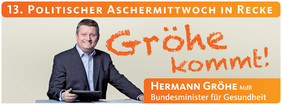 Am 05. März 2014 findet in Recke der 13. Politische Aschermittwoch des CDU-Kreisverbandes Steinfurt statt. Ausrichter ist die CDU-Ortsunion Recke-Steinbeck. Auf den vielen Veranstaltungen in den vergangenen Jahren hatte es bei sehr prominenten Rednern jeweils ein volles Haus gegeben.