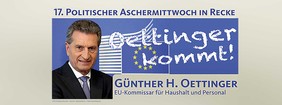 Der diesjährige Hauptredner beim politischen Aschermittwoch kommt diesmal direkt aus Brüssel zur Kreis CDU. Es ist der deutsche EU-Kommissar für Haushalt und Personal und ehemalige Ministerpräsident von Baden-Württemberg (2005-2010), Günther Oettinger. Damit haben die Christdemokraten einen Politiker zu Gast, der sich als versierter Europakenner speziell zu den in diesem Jahr anstehenden wichtigen europapolitischen Entscheidungen äußern wird. Da gilt es zum einen, die zweite Etappe des Brexits zu bewältigen, es geht um eine gerechte Verteilung von Flüchtlingen auf die einzelnen Mitgliedstaaten, sowie um ein entschiedenes Entgegentreten dem wachsenden Rechtspopulismus gegenüber und damit auch einer europafeindlichen Haltung, kurzum: Es geht um die Frage, warum ist ein starkes Europa so wichtig für unsere Zukunft? Deshalb dürfen die Gäste auf seine Rede sehr gespannt sein.