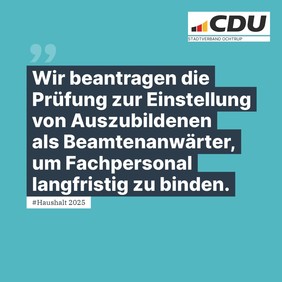 Da Beamte des ehemals mittleren nichttechnischen Dienstes die gleichen Aufgaben wie Verwaltungsfachangestellte ausführen und eine Ausbildung und ggf. spätere Übernahme in diesem Bereich im Beamtenstatus für Bewerber attraktiv sein kann, beantragt die CDU-Fraktion die noch nicht besetzte Ausbildungsstelle zum „Verwaltungsfachangestellten“ in eine Anwärterstelle „Stadtsekretäranwärter(in)“ Laufbahngruppe 1 zweites Einstiegsamt des allgemeinen Verwaltungsdienstes (ehemals nichttechnischer Verwaltungsdienst) umzuwandeln.
