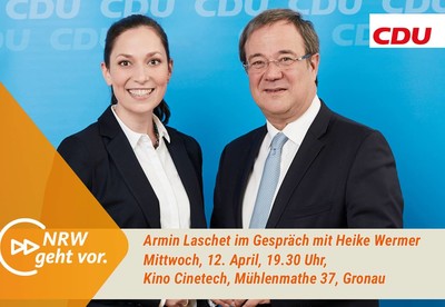 Gerne teilen wir den Veranstaltungshinweis von Heike Wermer, die im Nachbarwahlkreis Borken 2 kandidiert. Am kommenden Mittwoch, 12. April ist unser Spitzenkandidat Armin Laschet um 19:30 Uhr im Cinetech Kino in Gronau zu Gast. Die Veranstaltung ist…