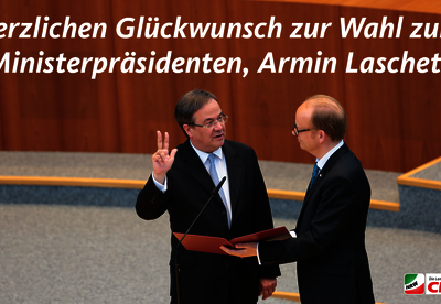 Wir gratulieren Armin Laschet zur Wahl zum Ministerpräsidenten im ersten Wahlgang. Er erhielt bei 196 abgegebenen Stimmen alle 100 Stimmen der Koalition aus CDU und FDP. 16 Stimmen waren ungültig und zwei Abgeordnete haben sich enthalten.