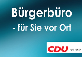 Am Montag, 23. September stehen die Ratsmitglieder Jürgen Bode und Jürgen Helker in der Zeit von 18:00 - 19:30 Uhr in einer Bürgersprechstunde im Bürgerbüro an der Prof.-Gärtner-Straße zur Verfügung. Alle interessierten Bürgerinnen und Bürger sind herzlich eingeladen, mit ihnen über die Ergebnisse der Bundestagswahl, Themen der Kommunalpolitik sowie über Probleme, Fragen und auch Anregungen der aktuellen CDU Politik zu sprechen und zu diskutieren. Nähere Informationen zur CDU-Ochtrup gibt es auch auf der Facebook-Seite unter www.facebook.com/CDUOchtrup.