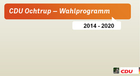 Am nächsten Samstag, 01.02.2014 trifft sich die CDU Ochtrup zusammen mit den zukünftigen Wahlkreiskandidatinnen und –kandidaten, den Ratsmitgliedern und sachkundigen Bürgern ab 14 Uhr zur Klausur in den Räumen von Happens Hof für die abschließende Detailarbeit des Wahlprogramms der Ortsunion.