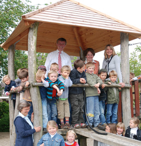 Lebhaft empfingen Gaux am Mittwoch die Mädchen und Jungen in der DRK-Tageseinrichtung an der Professor- Katerkamp-Straße. „Hier geht es kindgerecht zu, hier pulsiert das Leben“, sagte er begeistert. Die erstaunte Frage eines Jungen: Bist du der Zauberer?“ musste der Bürgermeisterkandidat allerdings lachend mit „nein“ beantworten. Barbara Kuhls Mahlitz, Vorsitzende des Schul- und Kulturausschusses sowie Ratsmitglieds-Kandidatin Hedwig Fehren zeigten sich ebenfalls erfreut über die vielfältigen Möglichkeiten der Kinder in dieser Einrichtung. „Wir waren im Jahr 1985 eine der ersten DRK-Tageseinrichtungen der Region“, erinnerte sich die Leiterin Renate Schier. Auch Grundschulkinder werden hier nach dem Unterricht betreut. Rege ist die Kommunikation zwischen der Igel-, Bären-, Spatzen-, Mäuse- und Raupengruppe. „Die Kinder spielen auch gruppenübergreifend miteinander“, so die Leiterin. Der pädagogische Auftrag wird von den 19 Mitarbeiterinnen und Mitarbeiter inklusive Praktikanten sehr ernst genommen. „Durchsetzungsvermögen erlernen“, helfen und helfen lassen“, „Entscheidungen treffen“ und „kreativ sein“ sind nur wenige der Charaktereigenschaften, die hier gefördert werden.