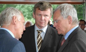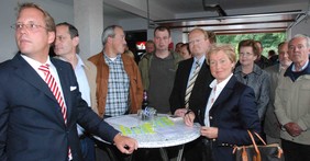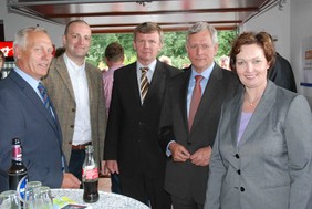 „Für mich ist der Landwirt nicht der Ölscheich des 21. Jahrhunderts. Die Hauptaufgabe besteht darin, in erster Linie Nahrungsmittel zu produzieren“, hob der Landwirtschaftsminister hervor. Ein weiterer Bereich, der sich in dieser Gegend wider spiegele, sei das Thema der erneuerbaren Energien, ob nun Windkrafträder oder Biogasanlagen. „Das ist natürlich ein Konfliktfeld“, sagte Uhlenberg. Es handele sich um eine zusätzliche Aufgabe der Landwirtschaft und die Politik habe bereits ihren Beitrag zur Novellierung des Erneuerbare-Energien-Gesetzes geleistet. Es sei wichtig, die Balance zu halten zwischen einer leistungsfähigen Landwirtschaft und einer guten Umweltpolitik.