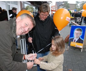 Dabei lernte Gaux wieder zahlreiche Ochtruper kennen, die ihrerseits neugierig auf den Kandidaten für das höchste Amt der Stadt waren. Die Kinder interessierten sich naturgemäß mehr für Luftballons und Lutscher, die ihnen der Anwärter auf den Bürgermeistertitel schmunzelnd überreichte.