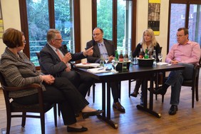 Mit Sternberg saßen in der Diskussionsrunde der CDU/FDP-Bürgermeisterkandidat Kai Uffelmann, die CDU-Stadtverbandsvorsitzende Christa Lenderich, das Ratsmitglied und Vorsitzende des Ausschusses Schule, Kultur und Sport Barbara Kuhls-Mahlitz sowie der sachkundige Bürger Andreas Volkery.