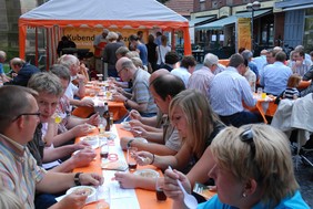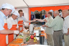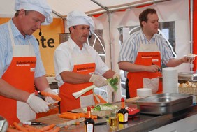 Neben der Politik kamen die Gaumenfreuden keineswegs zu kurz. Köstlich mundeten die Porree-Mett-Pfanne, ebenso wie die Hackpfanne mit Möhren und Spitzkohl. Die beiden Politiker mit den original französischen Kochs-Mützen hatten ganze Arbeit geleistet. Ihnen zur Seite stand übrigens ein Profi: Event-Koch Detlef Büter.