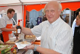 Kubendorff und seine „Koch-Show“ sind im Kreis Steinfurt ein Begriff. Das Finale fand in Ochtrup statt. Kreistagsmitglied Benno Hörst brachte eine Flasche ganz besondere „EOC-Würze“ mit und spielte damit auf das gerade veröffentlichte Urteil des Verfassungsgerichtes zum Thema „Direktverkaufszentren“ (Factory-Outlet Centers“) an. Mehr als 5000 Quadratmeter Verkaufsfläche nur für Gemeinden mit mehr als 100000 Einwohnern – diese Auffassung wurde für rechtswidrig erklärt. Das macht Hoffnung auf Verwirklichung der EOC-Erweiterungspläne in Ochtrup.