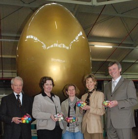 „Es war sehr aufschlussreich, den Produktionsprozess in diesem bodenständig und vorausschauend geführten Familienbetrieb zu erleben“, betonte Gaux. Hergestellt werden Delikatessen für die Lebensmittelwirtschaft. Aus Hühnereiern entstehen schmackhafte Tiefkühlartikel vom Omelette bis hin zu Crepes mit Quark und Rosinen. „Als besonders positiv empfinde ich die Tatsache, dass hier Naturprodukte ohne Zusatzstoffe verarbeitet werden“, so der Bürgermeisterkandidat weiter. Saisonal steht auch die Herstellung farbiger Ostereier auf dem Programm. Darüber hinaus bilden Echtschalen-Eier mit Nougat- und Schokoladentrüffel-Füllung eine Besonderheit. Der Kundenkreis des Unternehmens sind Großverbraucher, vor allem aus dem Catering-Bereich. „Trotz weltwirtschaftlich schwerer Zeiten steuert der starke Familienverband die Gut Springensheide GmbH sicher durch das derzeit unruhige Fahrwasser“, sagte Gaux anerkennend.