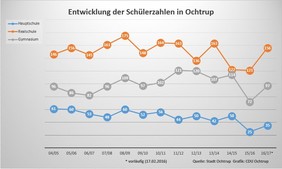 Ochtrup - Der Knick des letzten Jahres bei den Schülerzahlen ist gestoppt. Dies hatten seinerzeit auch bereits die prognostizierten Zahlen für die Schulentwicklung durch das Institut Komplan gezeigt. So sind aktuell bei der Hauptschule 35, bei der Realschule 156 und am Gymnasium 97 Anmeldungen verzeichnet.